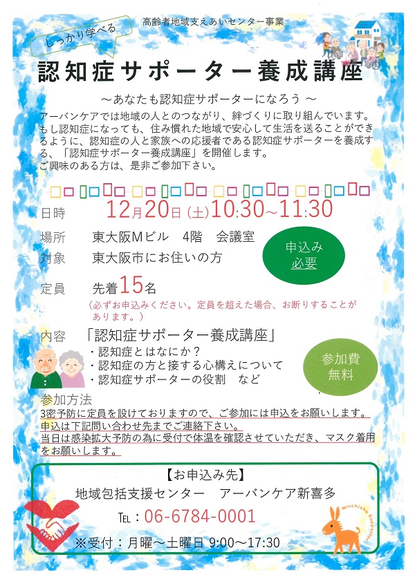 (主催:地域包括支援センター アーバンケア新喜多 ☎06-6784-0001)