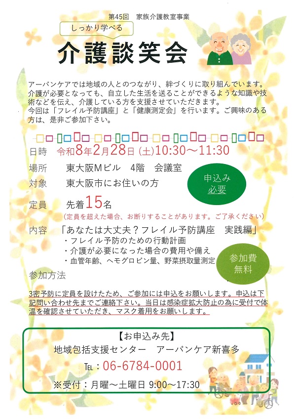 (主催: 地域包括支援センター アーバンケア新喜多 ☎06-6784-0001)