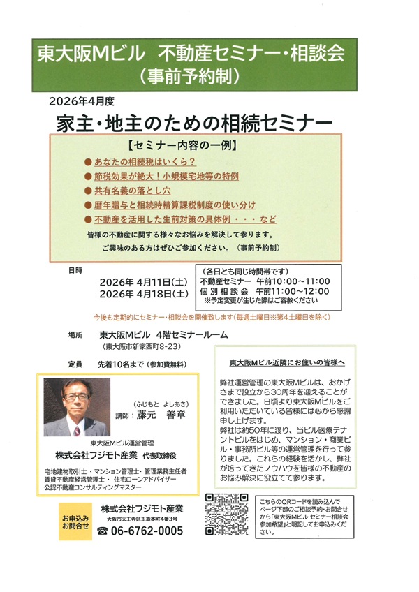 家主・地主のための相続セミナー・相談会(2026年4月度)