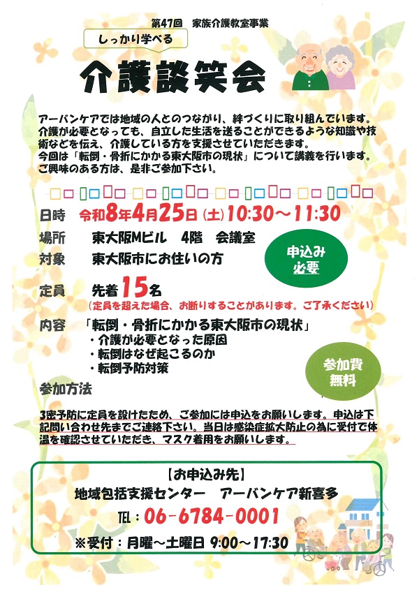 (主催: 地域包括支援センター アーバンケア新喜多 ☎06-6784-0001)