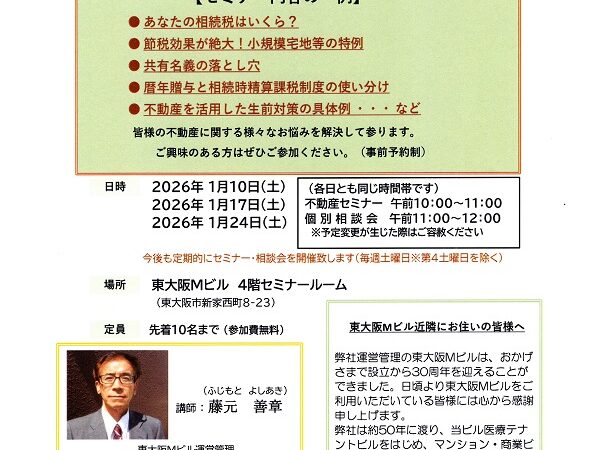 家主・地主のための相続セミナー・相談会(2026年1月度)